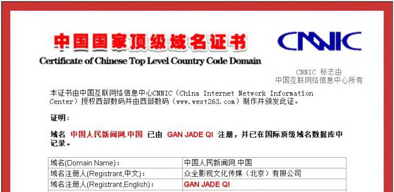 “中国人民新闻网.中国、中国人民新闻网.cn 均属本网注册备案所有。本网站《中国人民新闻网》在全国范围内暂没有采编人员,如涉及到以《中国人民新闻网新闻从业者身份的,请向当地宣传部反映举报,涉及到经济、财物请向当地公安派出所报案。本网“中国人民新闻网.中国、中国人民新闻网.cn”注册证书如下。